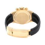 Case: 18K yellow gold oyster case 40mm in diameter. Special screw-down yellow gold push buttons that operate the chronograph function. Pointed crown guards. Rolex logo on the 18k yellow gold crown.