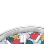 Dial: Turquoise blue celebration motif dial with steel luminescent baton hour markers and hands. Outer stick minute markers.