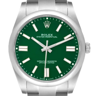Model Name: Rolex Oyster Perpetual 41 Green Dial Steel Mens Watch 124300