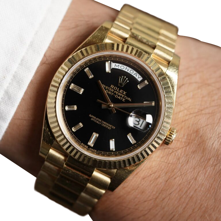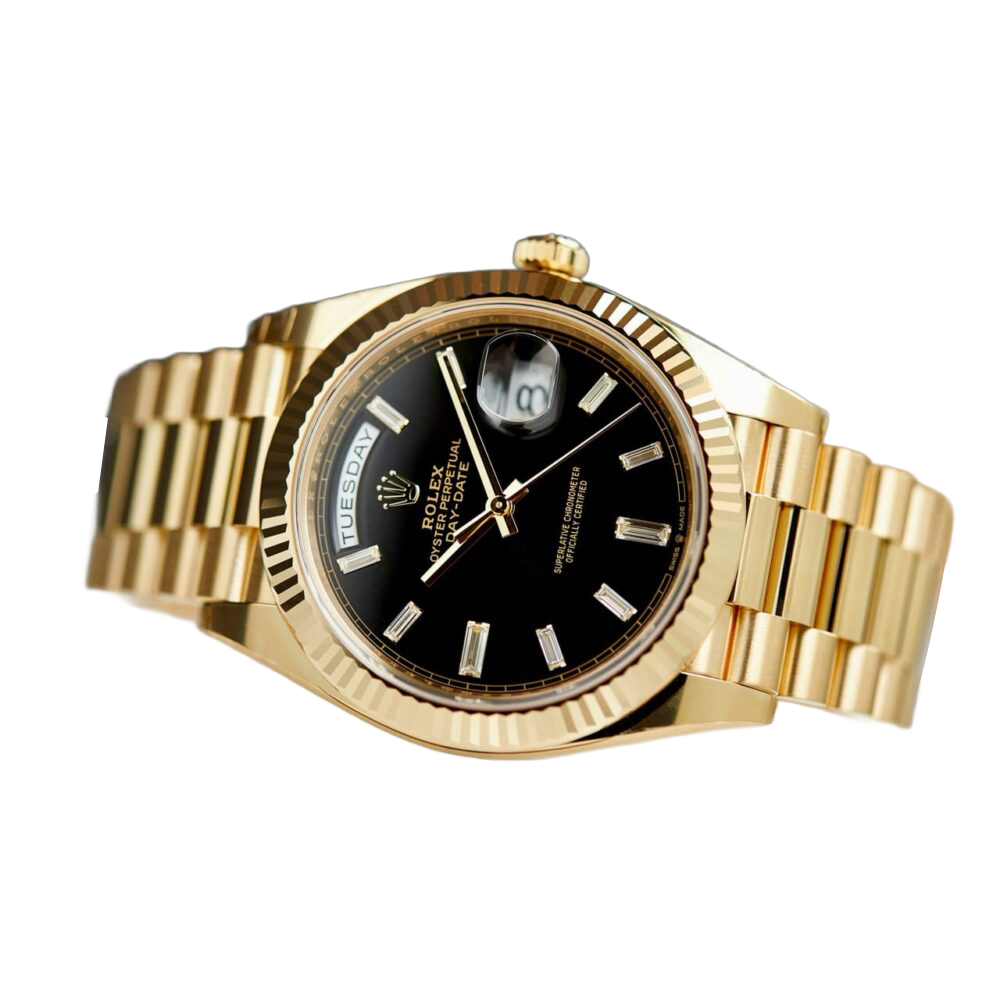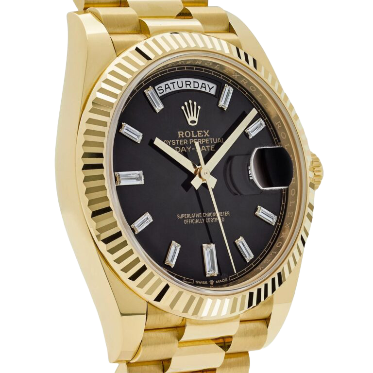Rolex President Day-Date 40mm Black Dial Yellow Gold Diamond Mens Watch 228238
