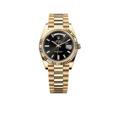 Model Name: Rolex President Day-Date 40mm Black Dial Yellow Gold Diamond Mens Watch 228238