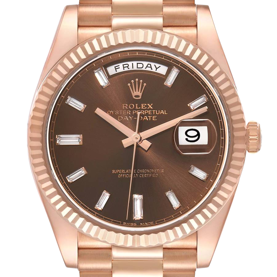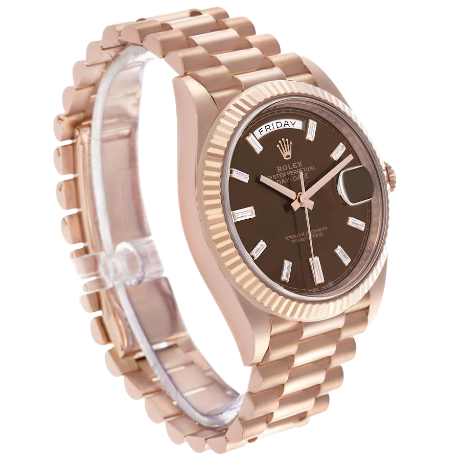 Model Name: Rolex President Day-Date 40 Rose Gold Chocolate Diamond Watch 228235